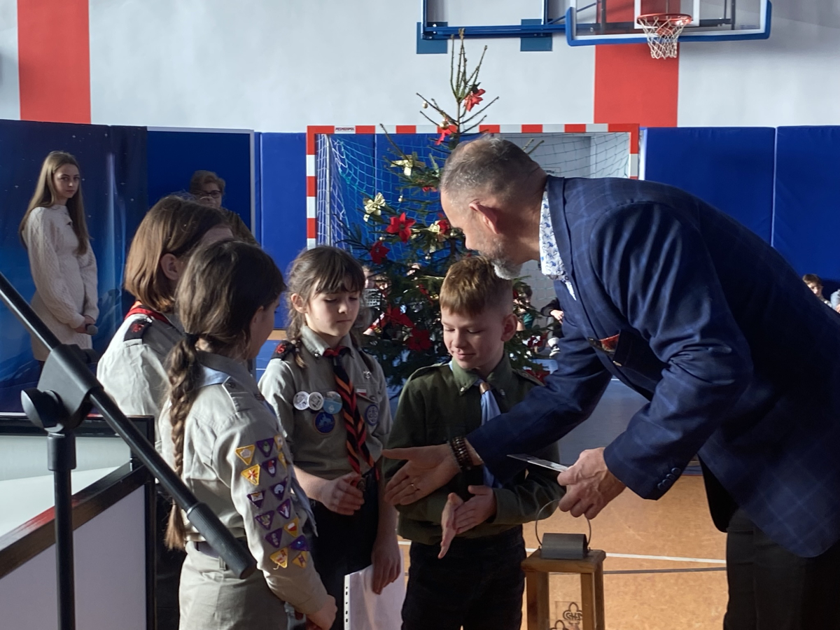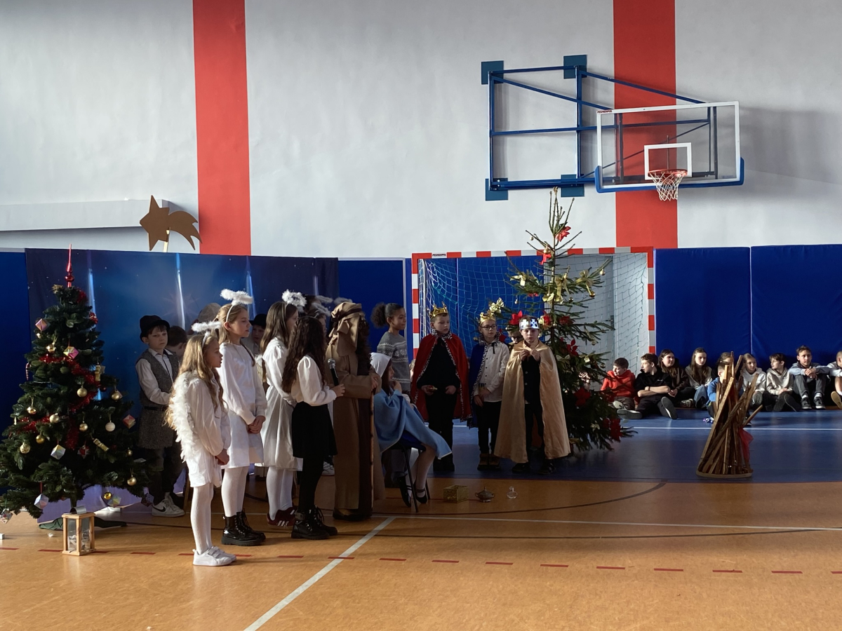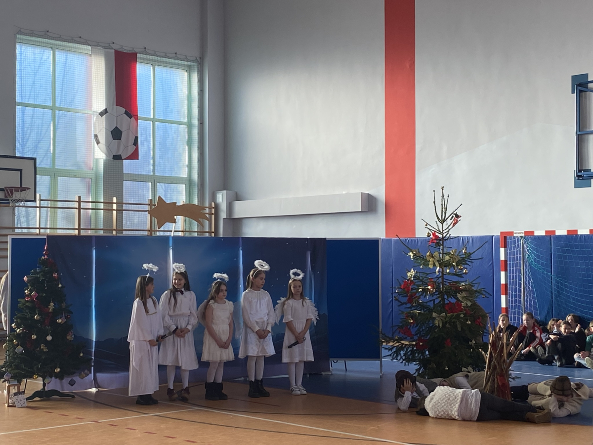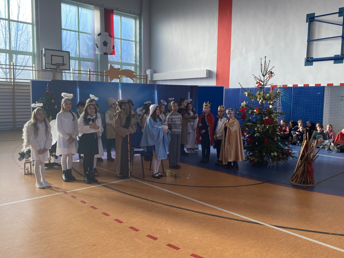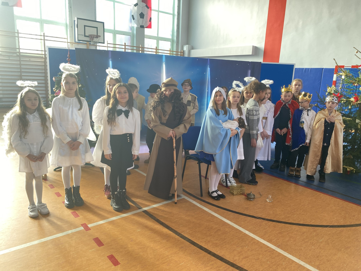 Dnia 19 grudnia 2025 uczniowie klasy 3a pod kierunkiem pani Iwony Małygi zaprezentowały przedstawienie jasełkowe „ Narodzenie Pana „ . Na początku spotkania zuchowie przynieśli betlejemskie światło pokoju i przekazali je ręce Pana Dyrektora. Barwne stroje poszczególnych aktorów , pięknie wykonane kolędy zostały przyjęte przez obecnych gromkimi brawami. Dekoracje do przedstawienia przygotowały p. Renata Stach , Iwona Zimoch , Małgorzata Trojan. Na końcu aktorzy przekazali całej społeczności szkolnej życzenia bożonarodzeniowe.