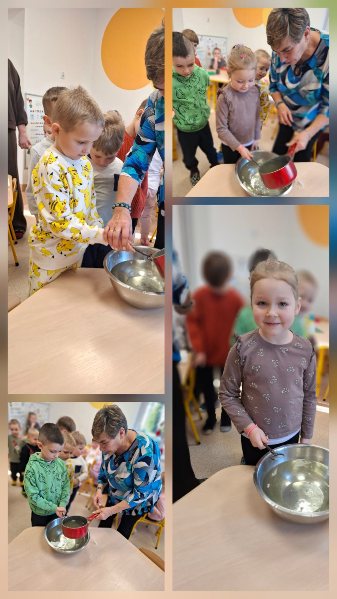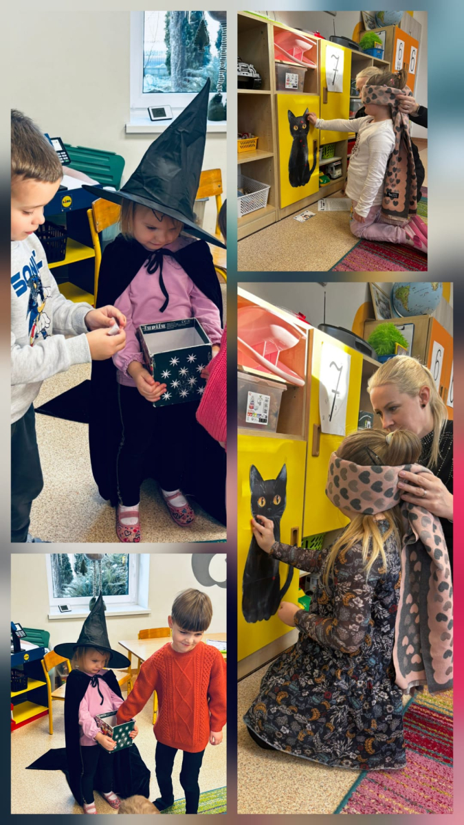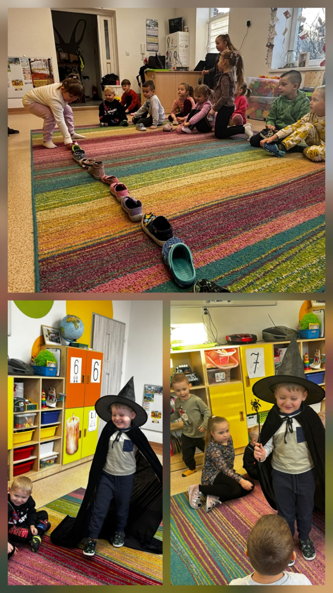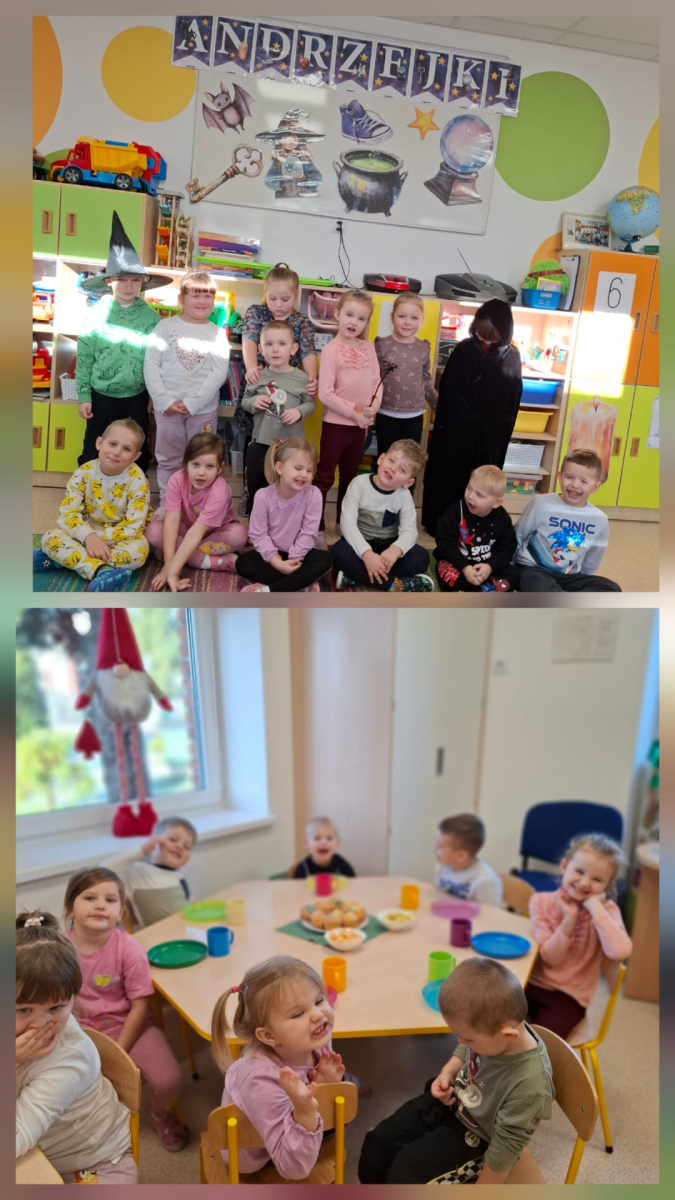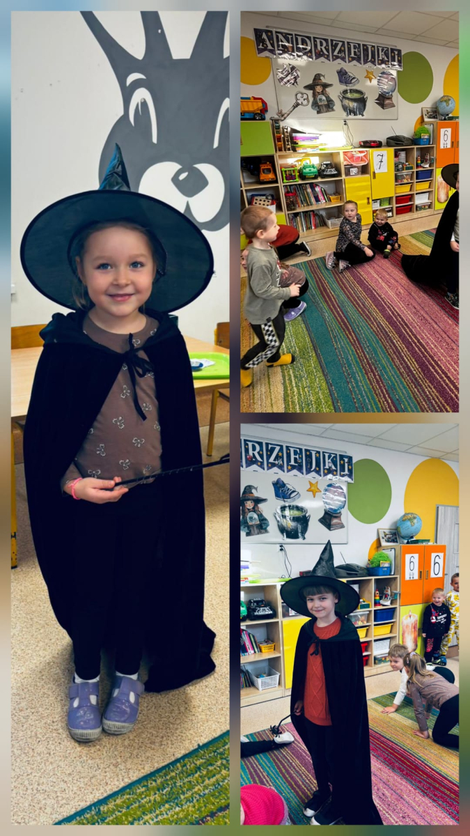 W naszym przedszkolu odbyły się radosne i magiczne zabawy andrzejkowe, podczas których dzieci mogły przenieść się w świat wróżb, tajemnic i wspólnej zabawy. Sala została udekorowana symbolami związanymi z andrzejkową tradycją, co od razu wprowadziło wszystkich w wyjątkowy nastrój. Przedszkolaki z dużym zainteresowaniem brały udział w przygotowanych wróżbach: lanie wosku, losowanie symboli przyszłych zawodów, „magiczne serduszka”, ustawianie butów do drzwi czy odgadywanie przyszłych przyjaciół. Każda zabawa wywoływała wiele śmiechu, radości i ciekawości. Nie zabrakło również tańców i wspólnych pląsów, a na zakończenie dzieci poczęstowały się słodkimi babeczkami przygotowanymi specjalnie na tę okazję przez mamę Joasi i Wojtka.
