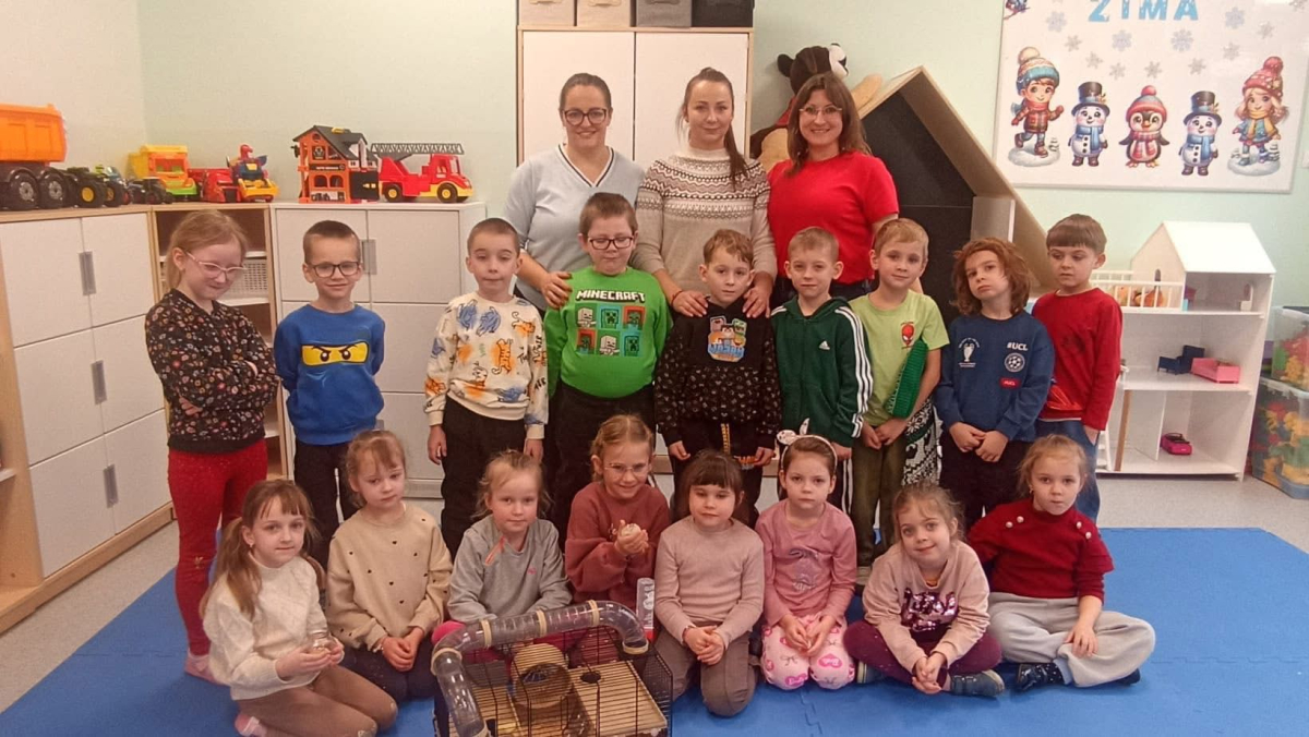 W dniu 2 lutego 2026 r. w naszym przedszkolu odbyło się wyjątkowe spotkanie edukacyjne z udziałem małych zwierząt domowych. Gościem specjalnym był chomik Lucjan, którego do przedszkola przyniosła pani Marysia. W wydarzeniu uczestniczyły dzieci ze wszystkich grup przedszkolnych. Podczas wizyty grupę „Wiewiórki” odwiedziła również kotka Minnie, która wzbudziła duże zainteresowanie wśród najmłodszych.
