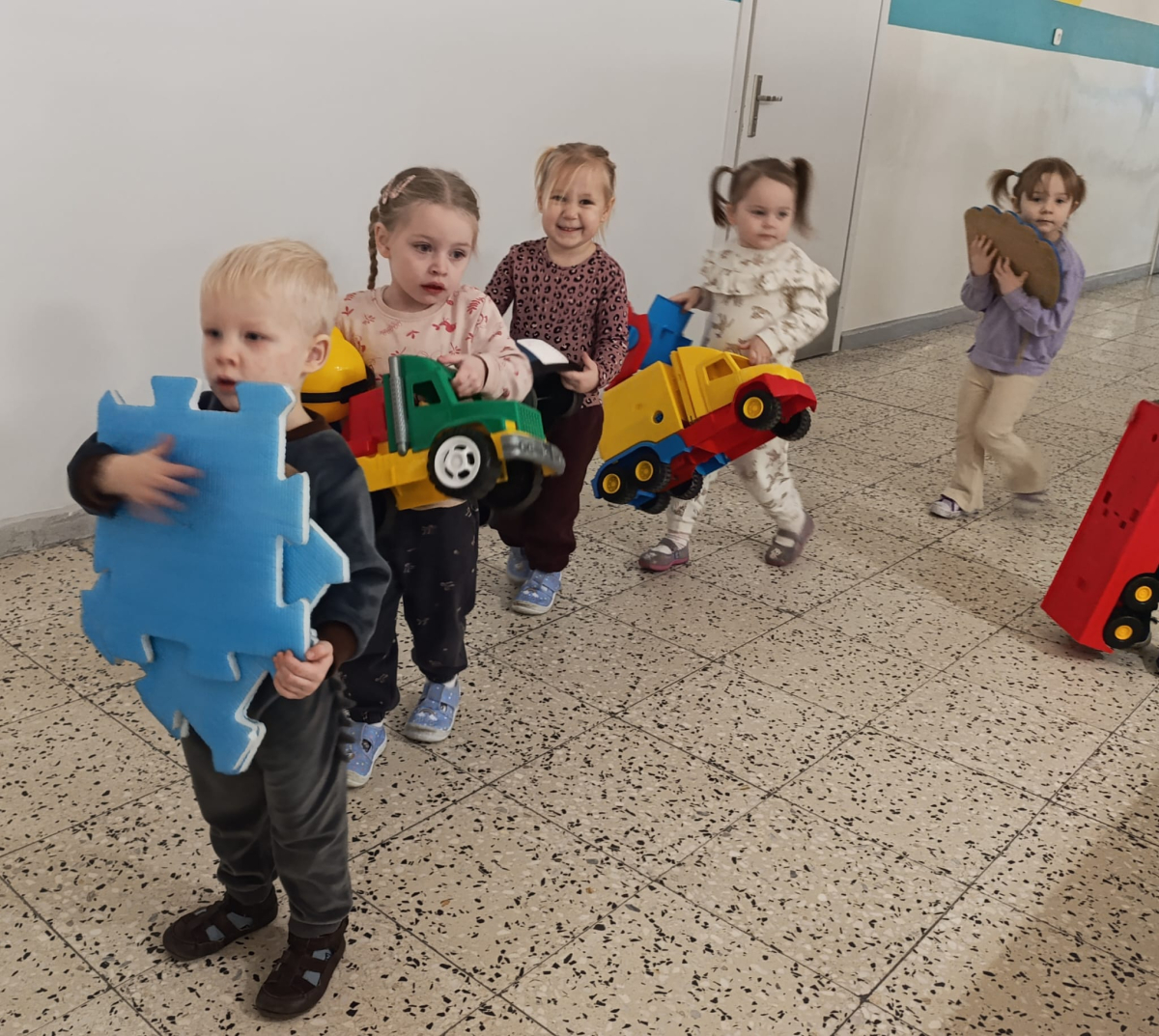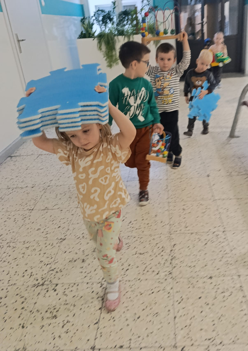 Oprócz wspomnianych chwil pełnych kolędowania maluszki z ogromną chęcią pomagały w przenoszeniu zabawek do nowej sali przedszkolnej. Były podekscytowane możliwością ułożenia przedmiotów na nowych półeczkach. Dziś mogą już bawić się w nowej sali - bardzo kolorowej i pełnej atrakcyjnych kącików.