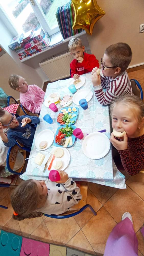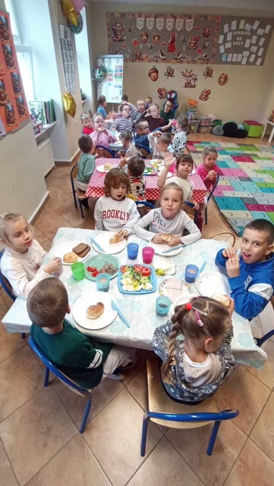 Przez cały tydzień „Sówki” rozwijały ważne kompetencje: uczyły się rozpoznawać i wyrażać emocje, zdobywały wiedzę o zdrowym stylu życia, ćwiczyły liczenie, rozwijały umiejętności manualne i współpracę w grupie. Było dużo radości, wspólnego działania i odkrywania nowych smaków!