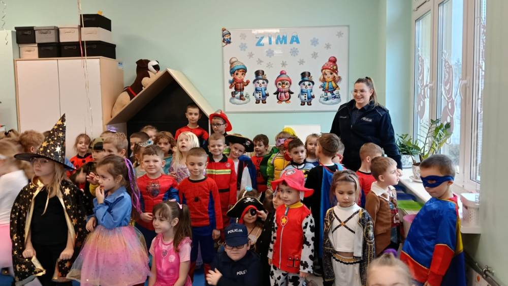Po pełnym radości Balu Karnawałowym nadszedł czas ostatnich godzin spędzonych w przedszkolu przed rozpoczęciem ferii zimowych. Właśnie wtedy nasze przedszkolaki odwiedziła pani policjantka, aby przypomnieć dzieciom najważniejsze zasady bezpieczeństwa podczas zimowego wypoczynku.