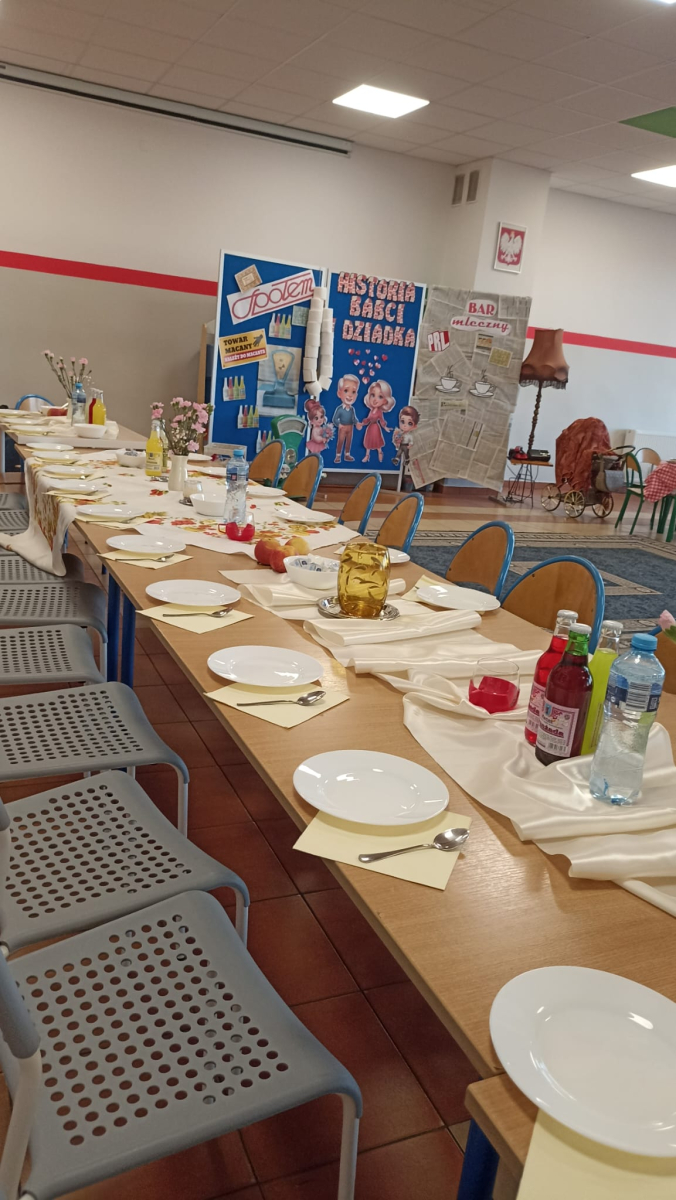 Scenariusz spektaklu nawiązywał do codzienności, w jakiej żyli nasi Dziadkowie. Dzieci zaprezentowały m.in. motywy towarów na kartki, sklepów „Społem”, barów mlecznych, wagi szalkowej, oranżady w szklanych butelkach oraz charakterystycznych strojów i obrusów, oddając klimat minionych lat. Przedstawienie w prosty i przystępny sposób ukazało realia życia sprzed lat oraz zmieniające się pokolenia.