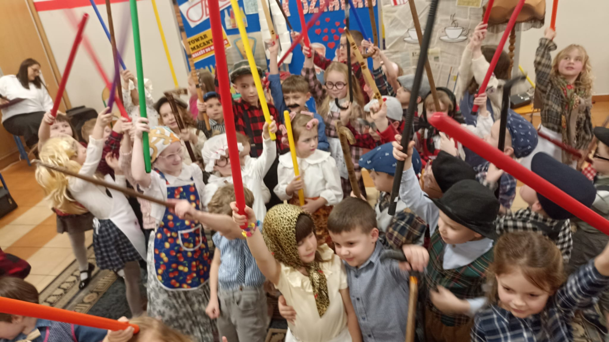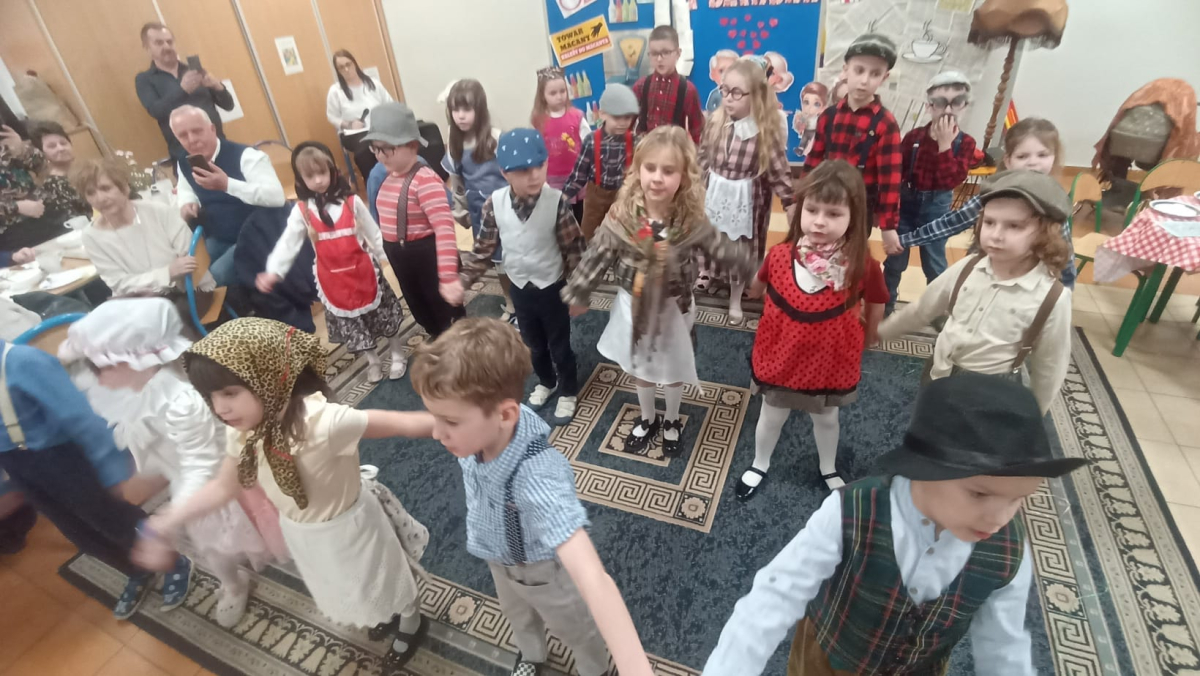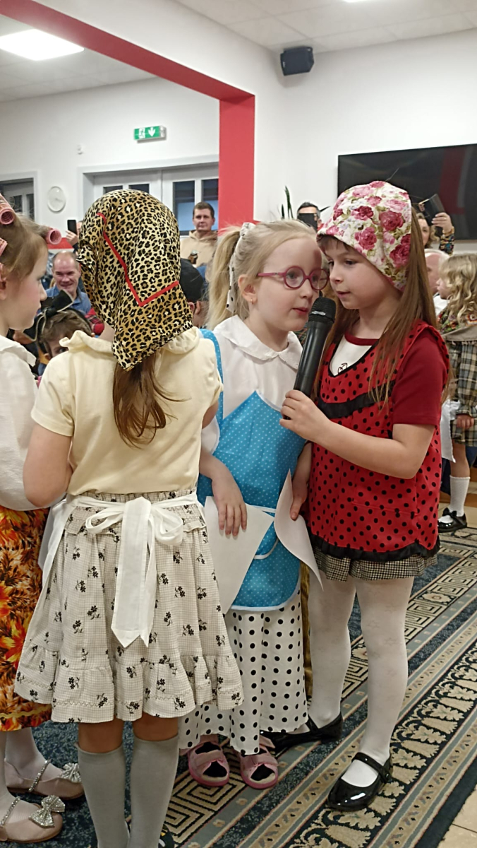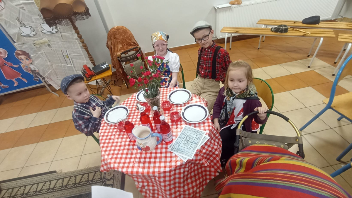 Z okazji Dnia Babci i Dziadka dzieci z grup „Sówki” i „Niedźwiadki” zaprezentowały wyjątkowe przedstawienie pt. „Historia Babci i Dziadka”, które wprowadziło widzów w realia czasów PRL.