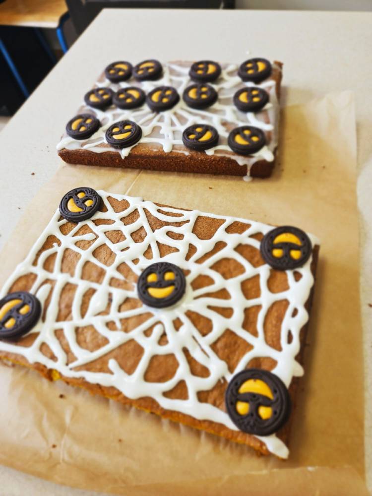 U pani Marzenki i pani Mirki dzieci piekły ciasto dyniowe, które później z dumą podzieliły się z koleżankami i kolegami z grupy „Wiewiórki” i „Jeżyki”.