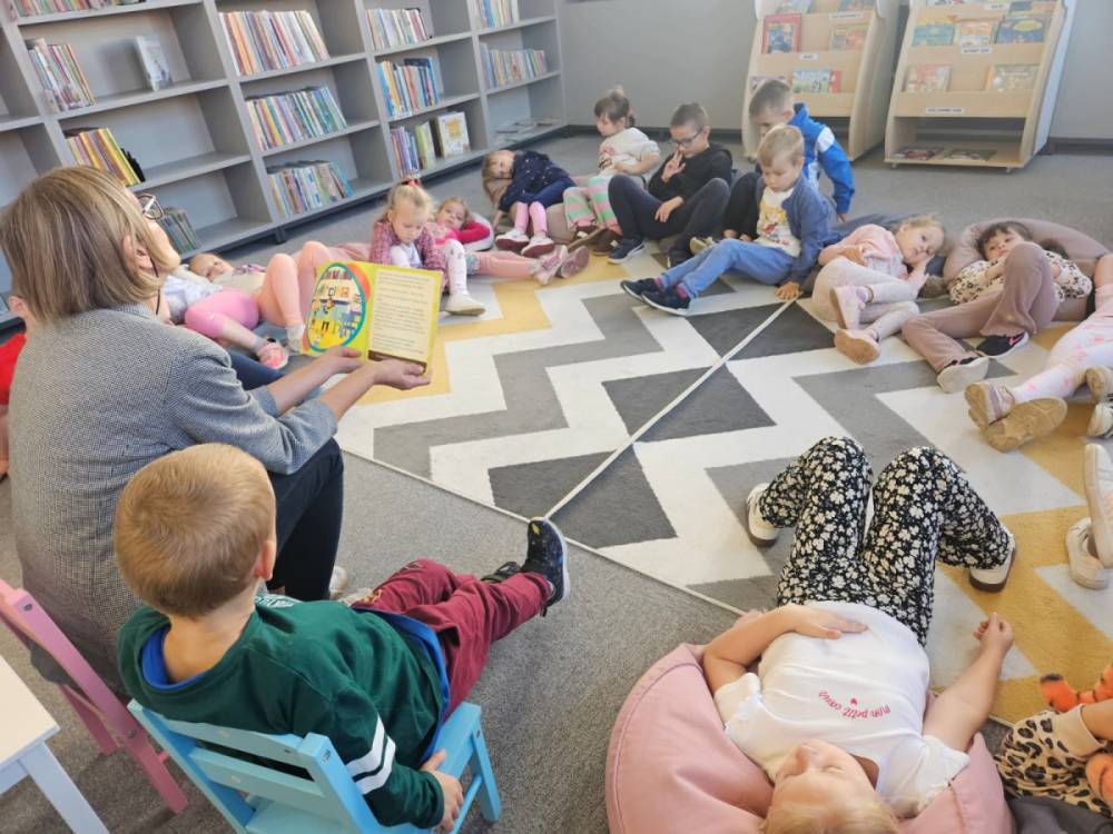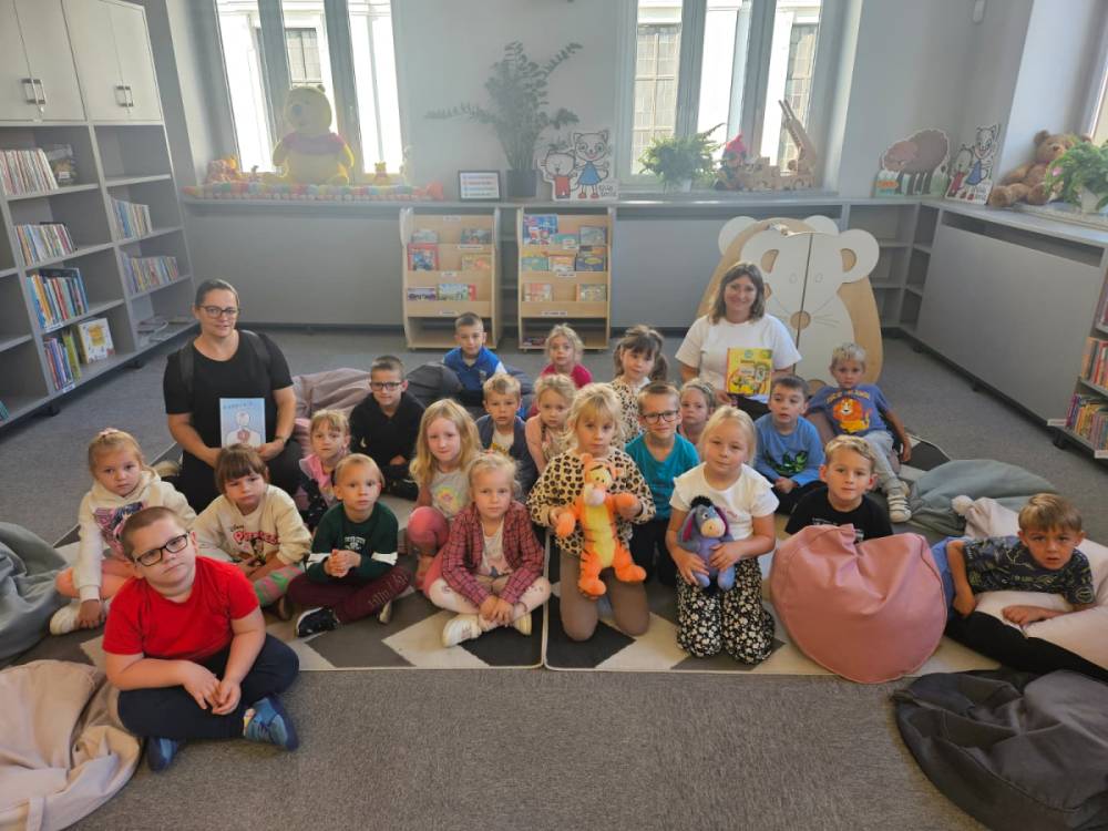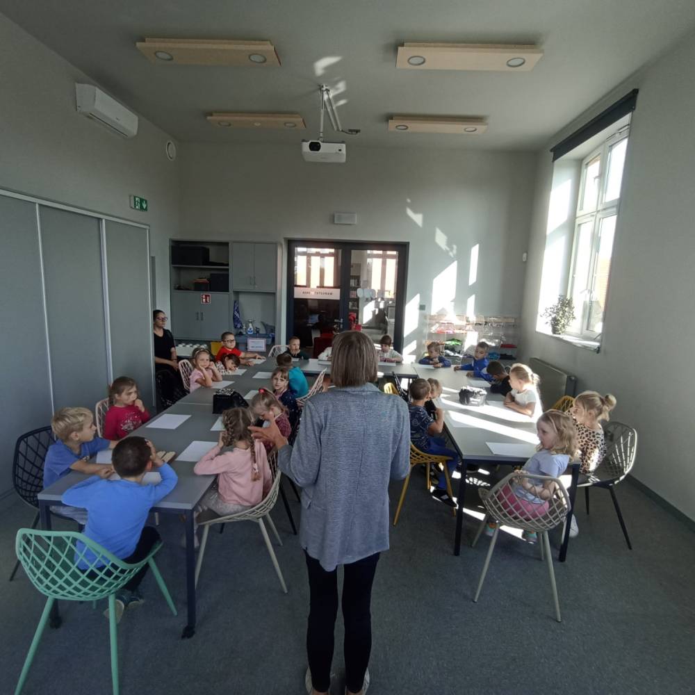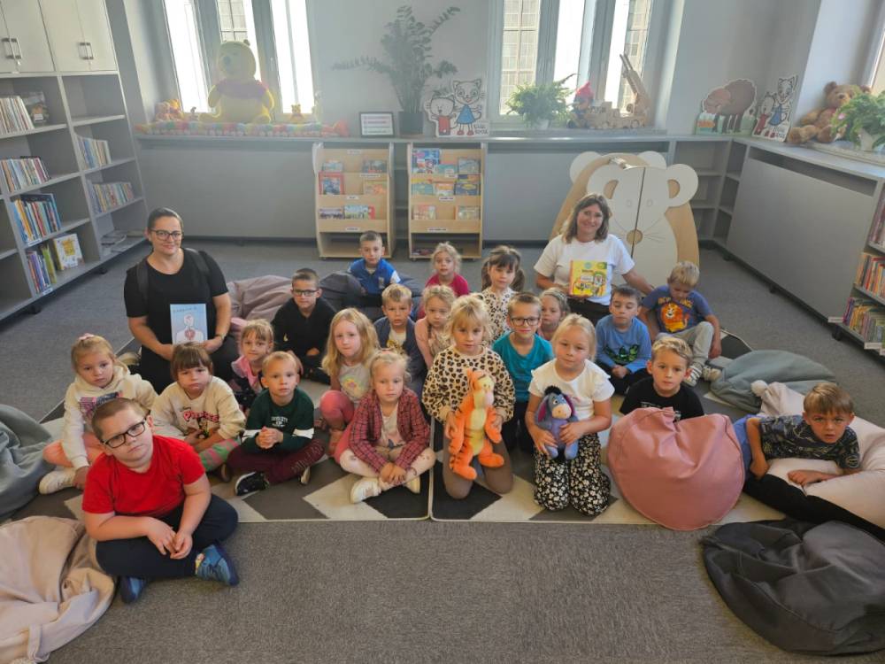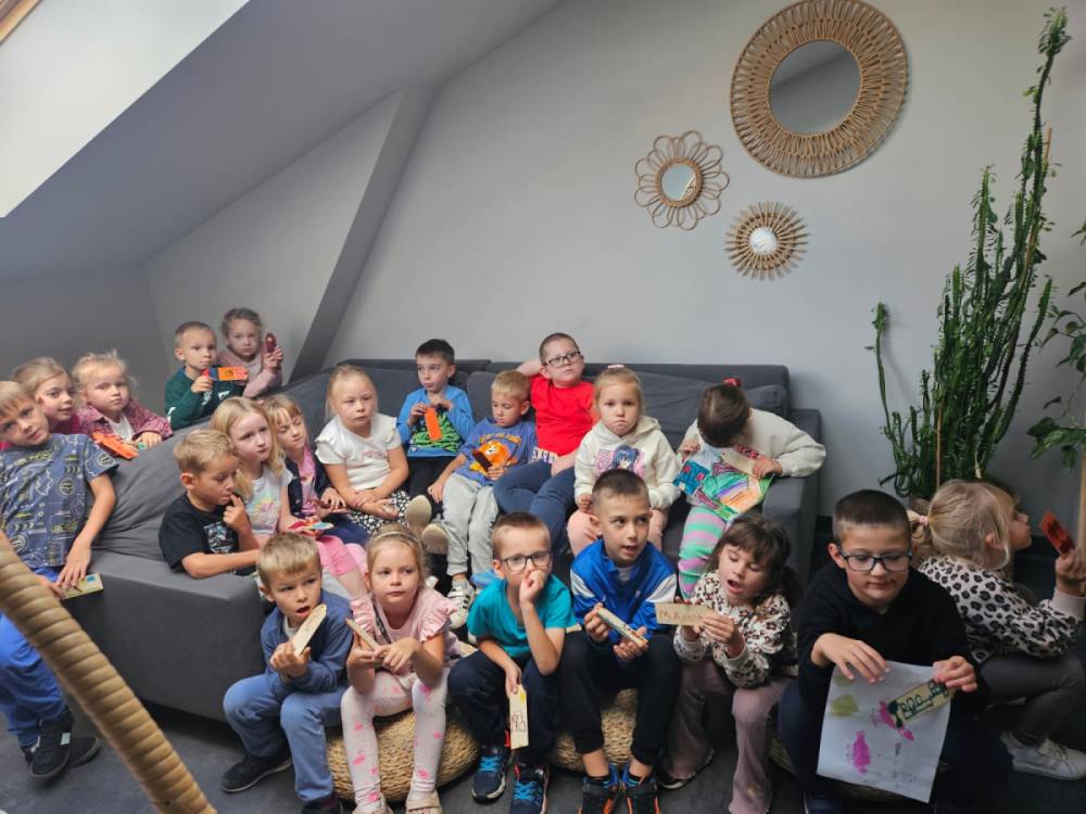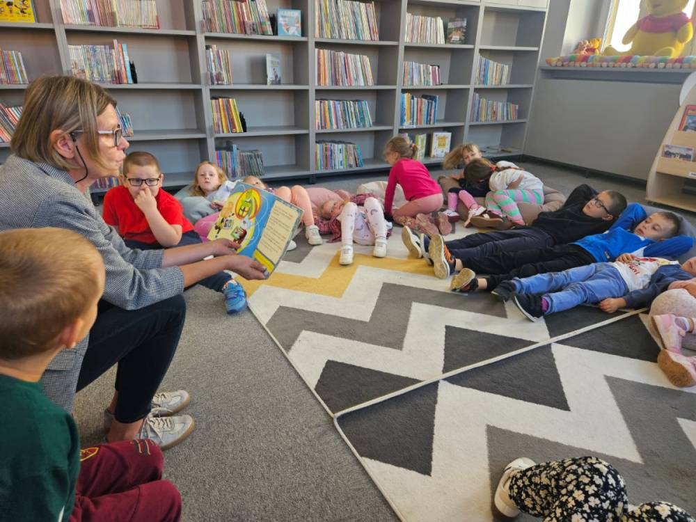 Już od pierwszych chwil na miejscu czekało na nich mnóstwo atrakcji. Dzieci miały okazję poznać tajniki pracy bibliotekarki, zobaczyć, jak funkcjonuje biblioteka, a także dowiedzieć się, dlaczego warto sięgać po książki. Największą radość sprawiło im słuchanie bajki „Przygody Febja – w bibliotece”, która rozbudziła ich wyobraźnię i zachęciła do rozmowy o książkach.