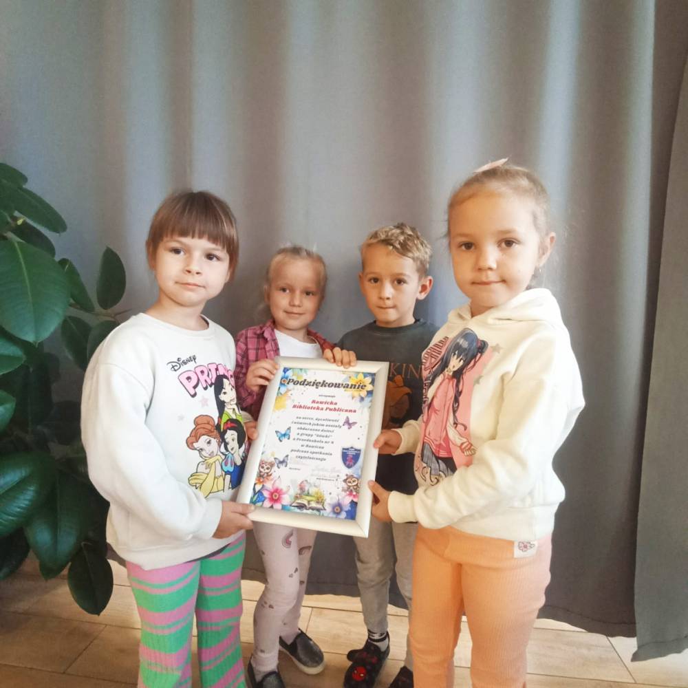 Po pełnej wrażeń przygodzie w bibliotece Sówki wróciły do przedszkola, gdzie czekały na nie kolejne niespodzianki. Każde dziecko otrzymało upominek – kubeczek z logo swojej grupy, w kubeczku słodką niespodzianke, piłkę antystresową z motywem globusa oraz imienny dyplom przedszkolaka. Radość i uśmiechy dzieci były najlepszym dowodem na to, jak ważne są takie dni.