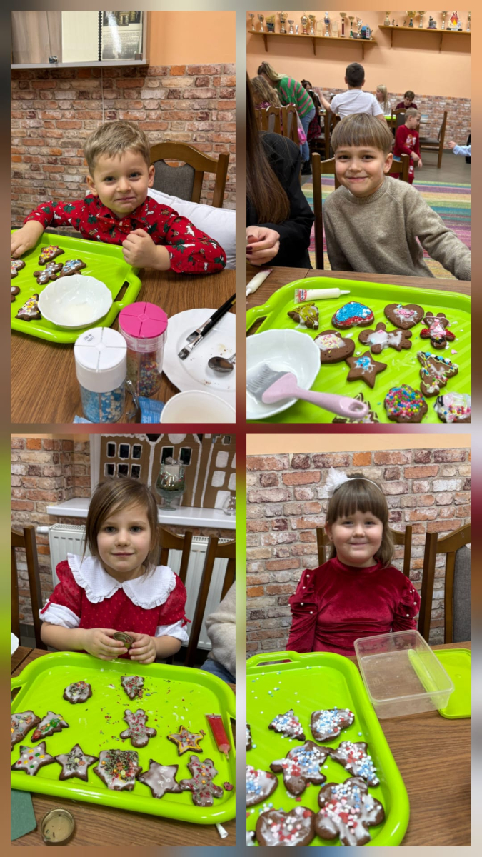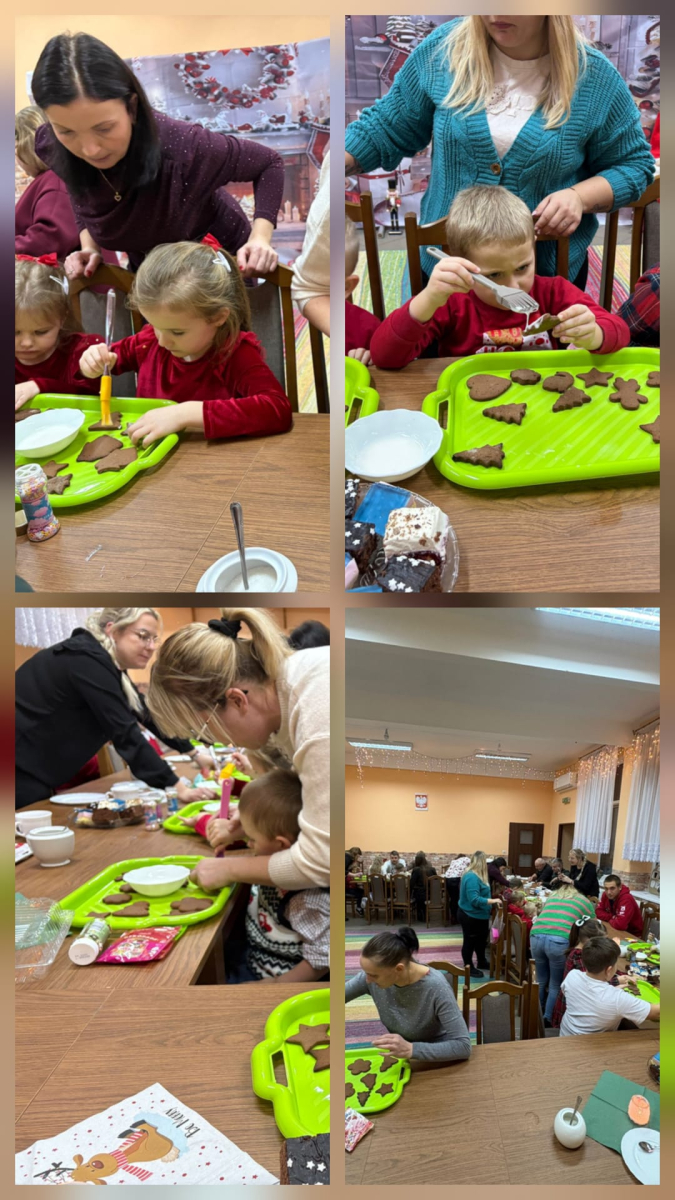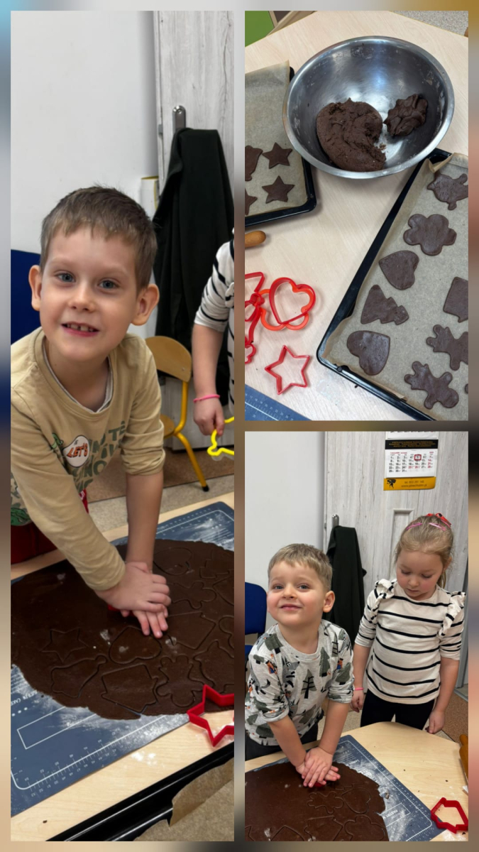 Następnie zabraliśmy się za pieczenie pierników. Od samego rana trwały przygotowania. Sensorycznie poznawaliśmy przyprawy typowe dla tego okresu. Odmierzaliśmy składniki, przygotowywaliśmy ciasto z którego wykrawaliśmy piękne, różnorodne kształty pierników. Zapach pieczonych ciasteczek długo można było czuć w naszym przedszkolu. Upieczone pierniczki czekały na dekorowanie. Wielkie rodzinne dekorowanie pierników miało miejsce podczas świątecznego spotkania z rodzicami. Na spotkaniu dzieci zaprezentowały program artystyczny o tematyce zimowo - świątecznej, który rodzice nagrodzili ogromnymi brawami.