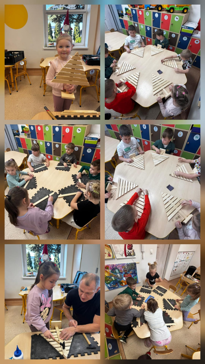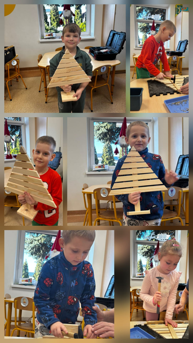 Również w grudniu dzieci miały możliwość wcielić się w role małych stolarzy. Pok okiem pana Krzysztofa dzieci wykonywały drewniane choinki, które stały się elementem dekoracyjnym w ich domach. Spotkanie dało dzieciom możliwość poznania nowej techniki pracy z drewnem.
