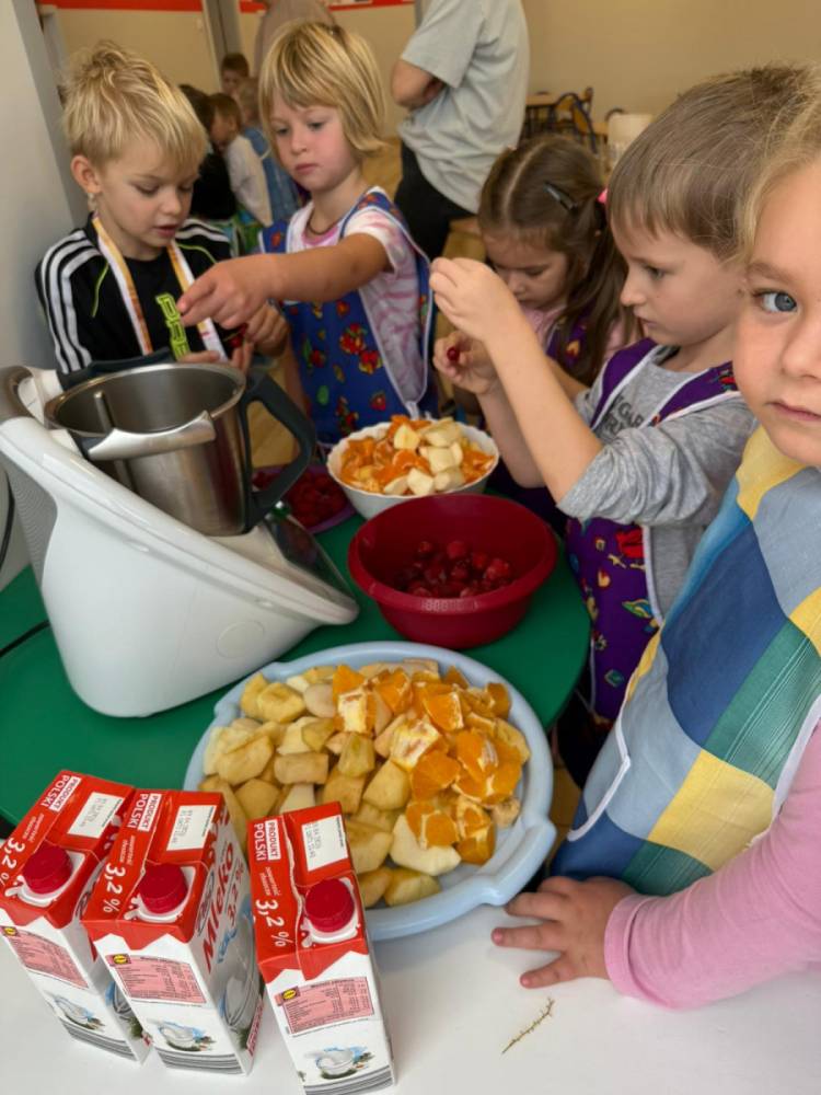 - Warsztaty Kulinarne – Spotkanie z Panią A. Szymkowiak – praca w kuchni: wspólne lepienie pierogów, wykonywanie koktajlu owocowego dla dzieci.