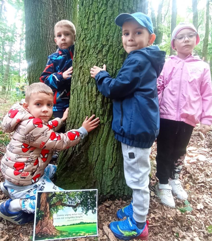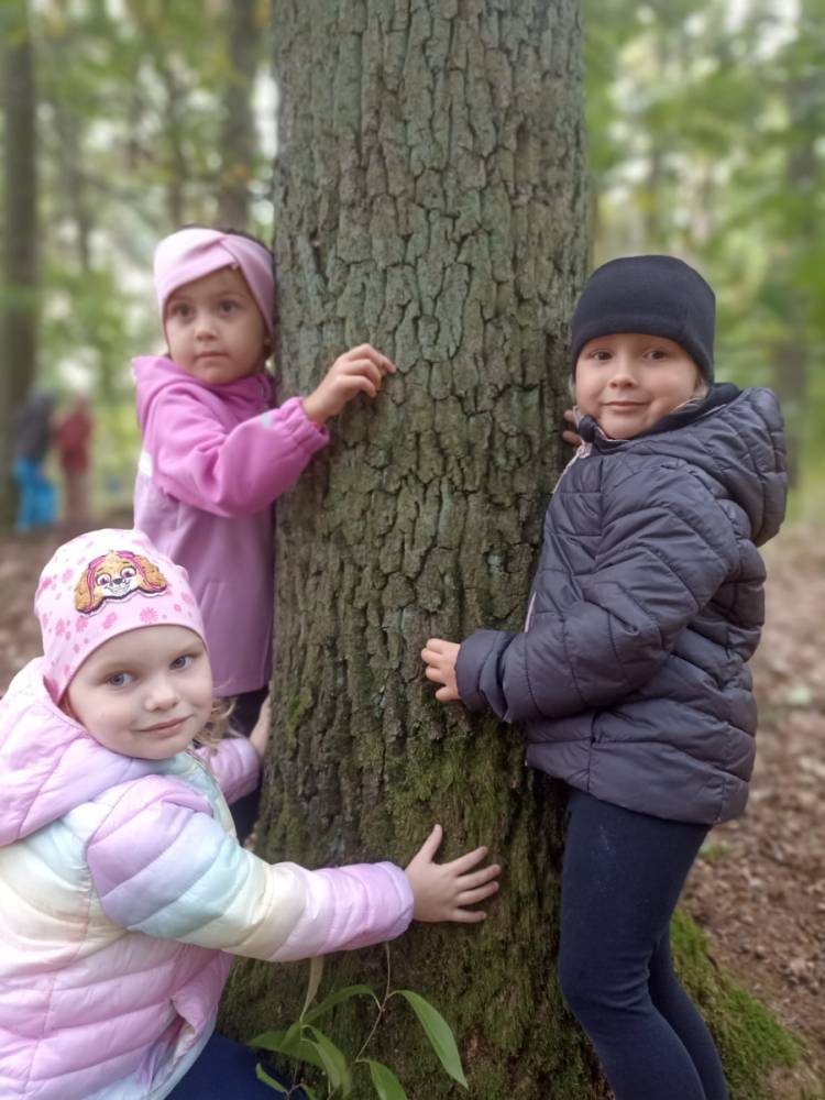 Najważniejszym momentem było jednak przytulanie drzew. Po co to robiliśmy? Przytulanie drzew pomaga poczuć się częścią natury, uczy wrażliwości na piękno otaczającego świata, daje chwilę wyciszenia i radości. To także doskonała okazja, by pokazać dzieciom, jak ważna jest troska o przyrodę i jak wiele możemy się od niej nauczyć.