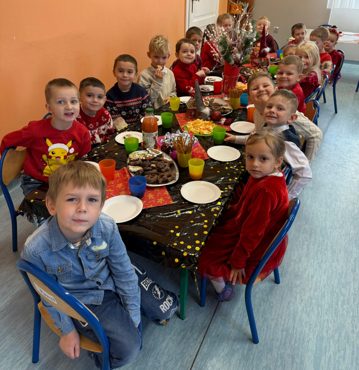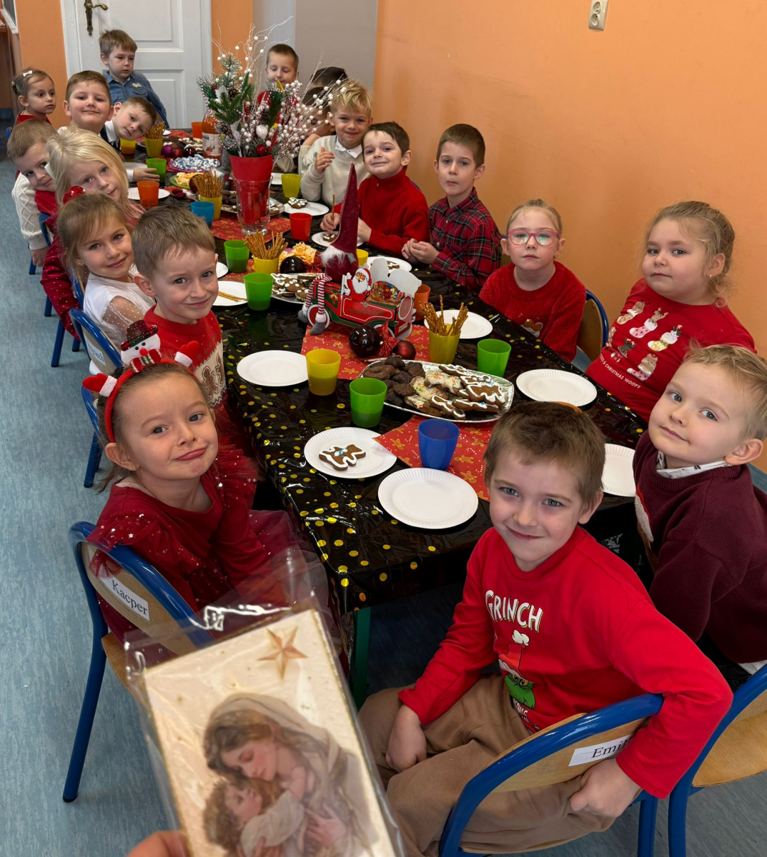 Dzisiaj w naszej grupie Wiewiórki panowała wyjątkowo ciepła, świąteczna atmosfera. Wspólnie obchodziliśmy wigilię – dzieliliśmy się opłatkiem, składaliśmy sobie serdeczne życzenia oraz spędziliśmy miły czas przy poczęstunku.