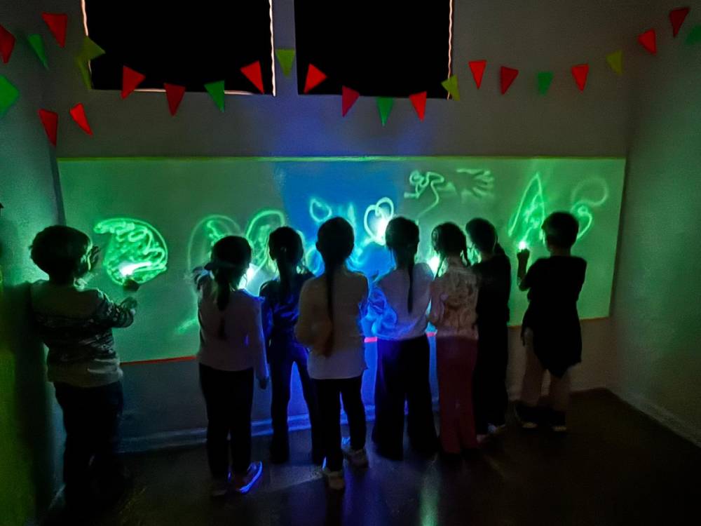odwiedziliśmy pokój iluzji, gdzie dzieci mogły malować światłem po ścianach,