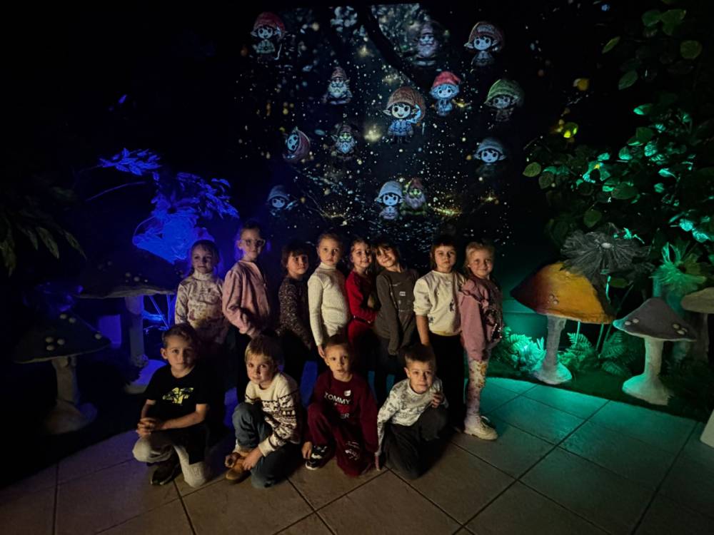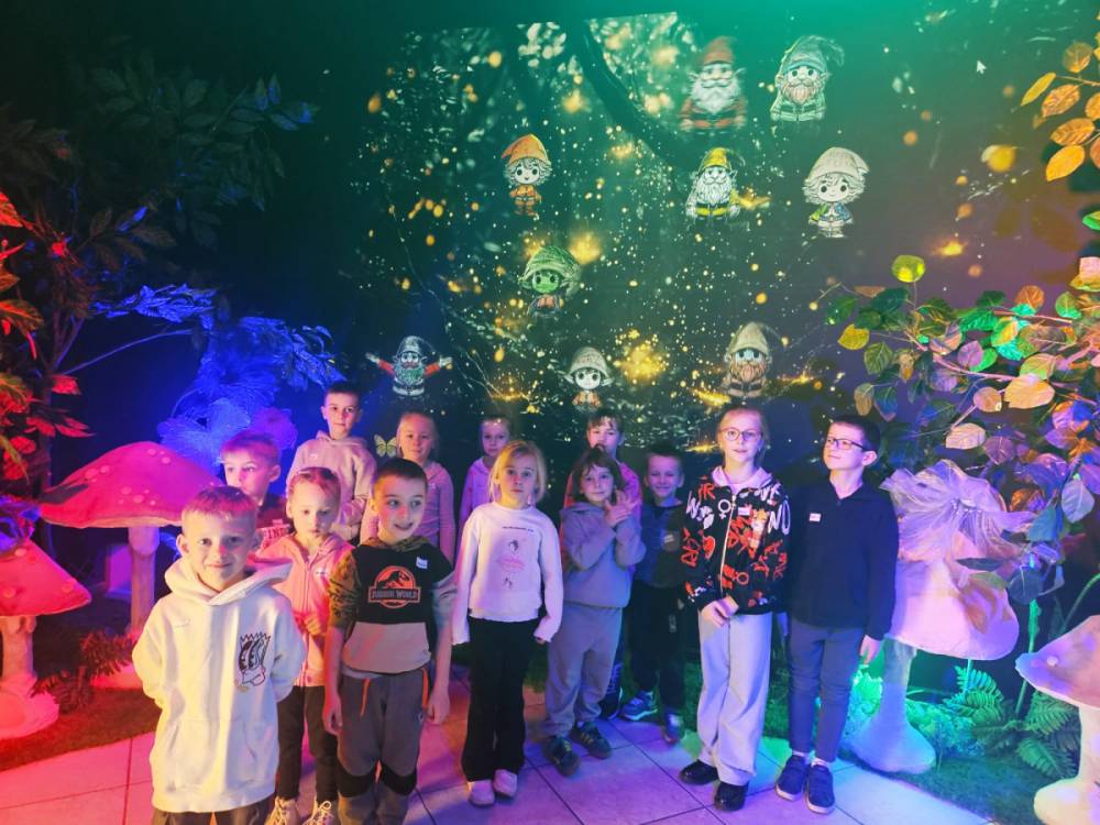 na zakończenie dzieci kolorowały swoje własne skrzaty, które „ożywały” na ścianach w tajemniczym pomieszczeniu.